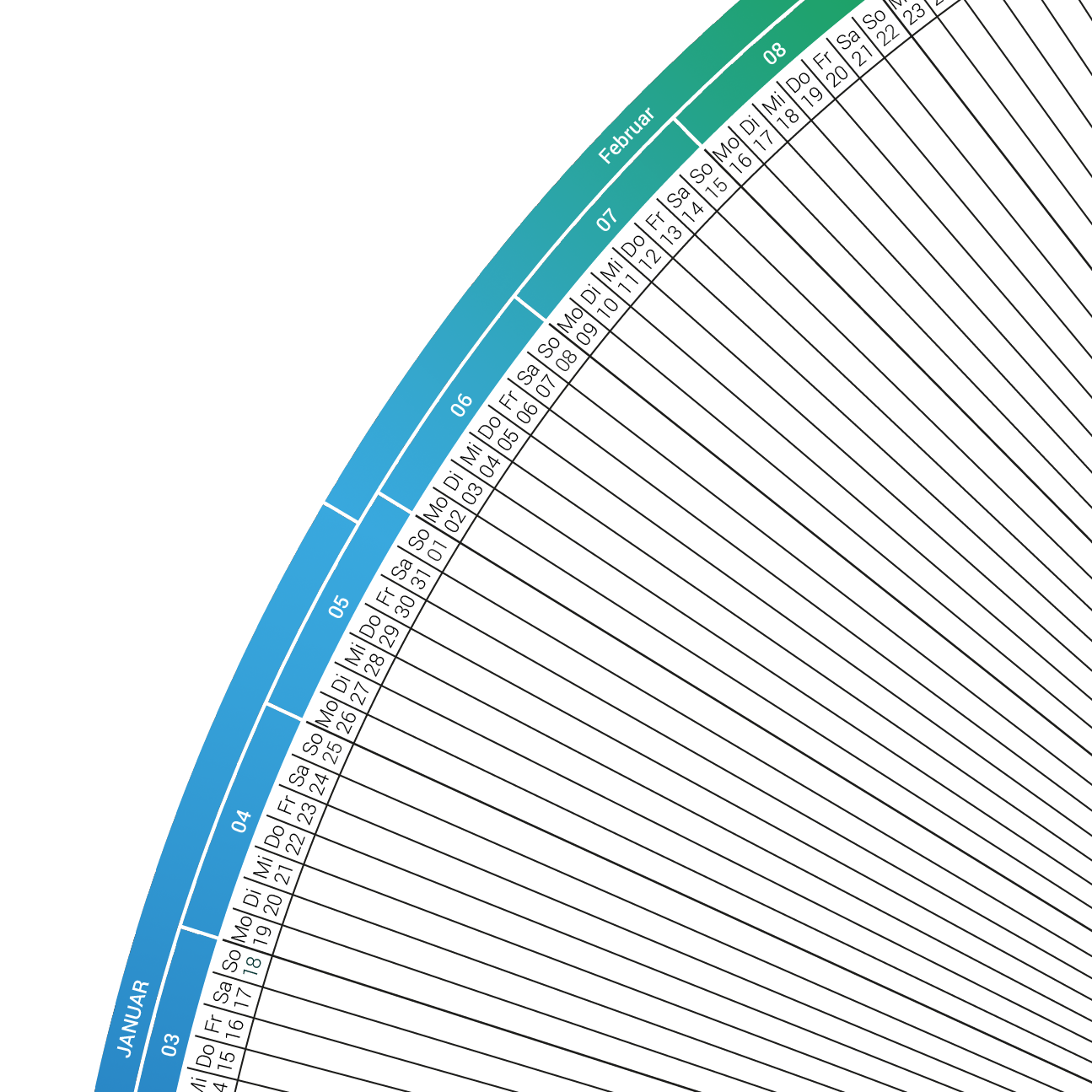 Mich faszinieren Kalender, so habe ich mich mal wieder in eine neue (Kalender) Idee vertieft. Selbstverständlich erkennt man meine Vorliebe für runde Formen in diesem wieder. Entgegen meinem ersten Kalender Egocal: Sport der für einzelne Einträge pro Tag ausgelegt war. Sollte diesmal mehr Platz in den einzelnen Tagen vorhanden sein, quasi ein Kalender fürs Büro. …