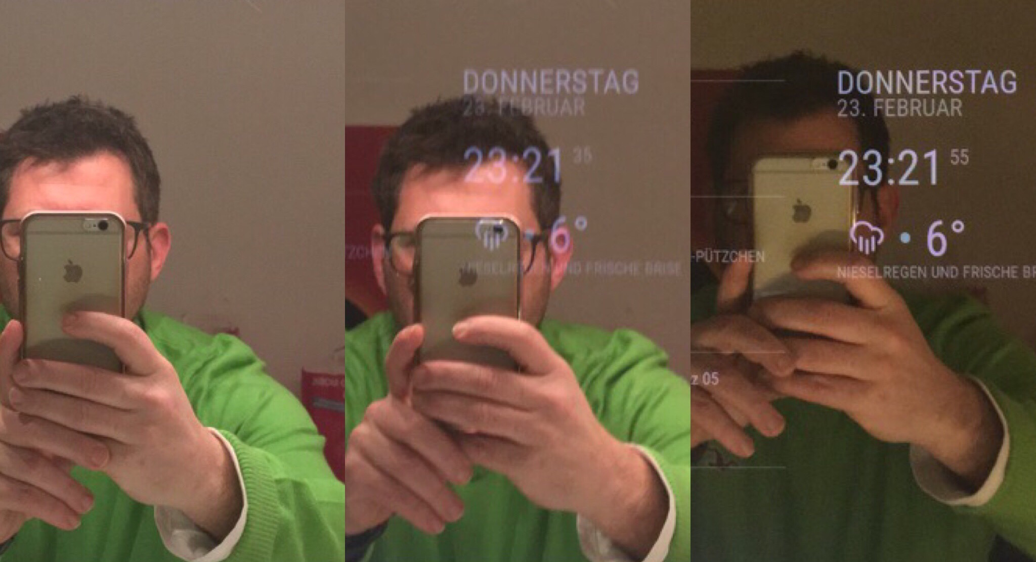 Die Idee hierfür ein Raspberry Pi 3, ein Display und ein Spionspiegel zusammenklöppeln. Es gibt schon die verschiedensten Projekte in dieser Richtung.